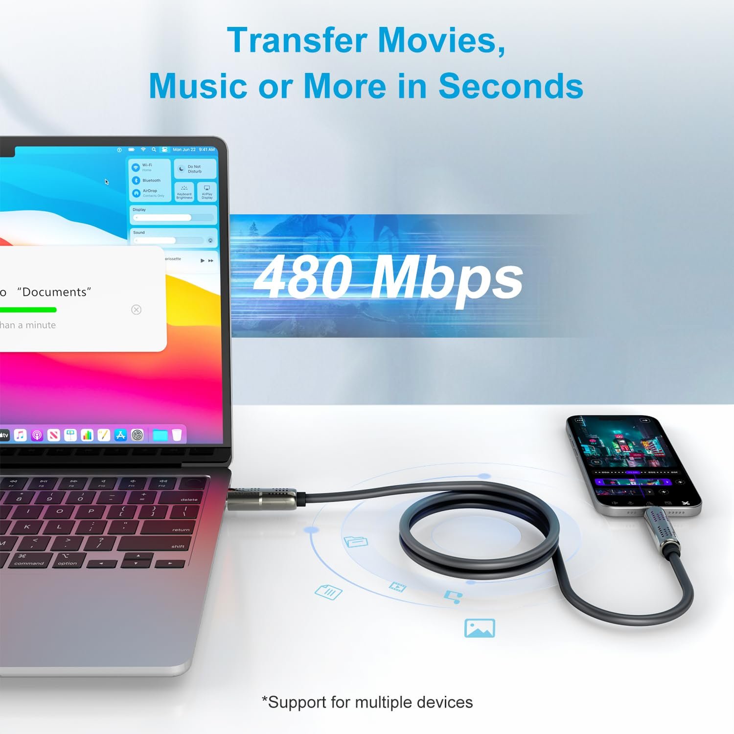 • 【240W ultra-fast charging】240W USB-C fast charging cable delivers ultra-fast charging and data sync for a wide range of devices. Experience ultra-fast usb to c cable with the USB C to USB C port: Charge your iPhone 16 to 96% in just 35 minutes and transfer data at 480Mbps—perfect for quick backups with 1200 songs per minute. With a 240W max output, it ensures seamless charging for iPhone, iPad, Samsung, MacBook, and more.